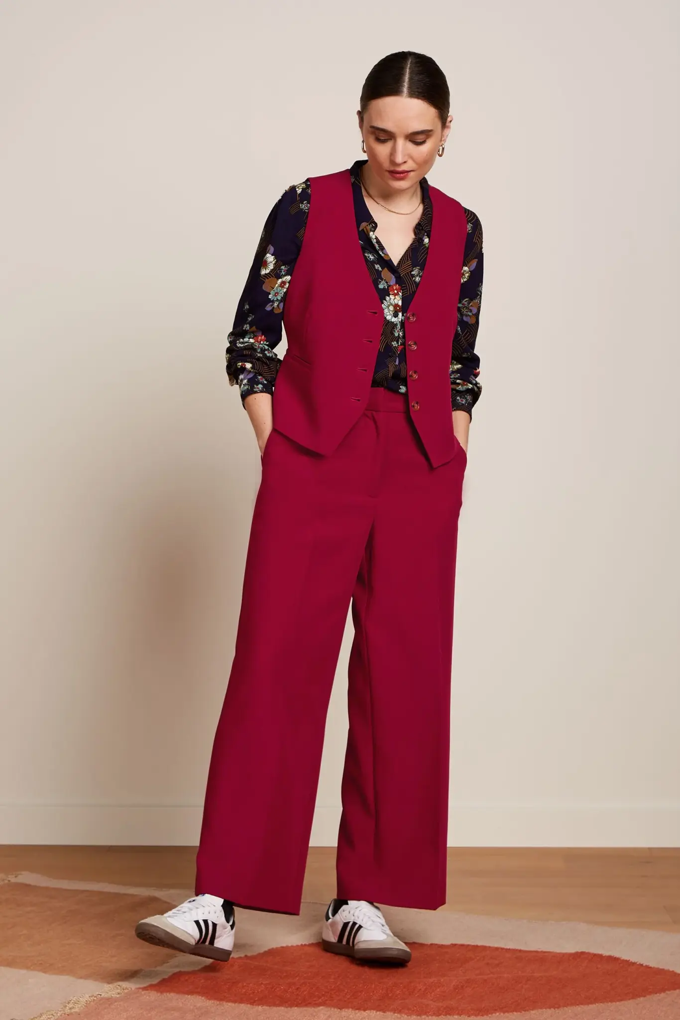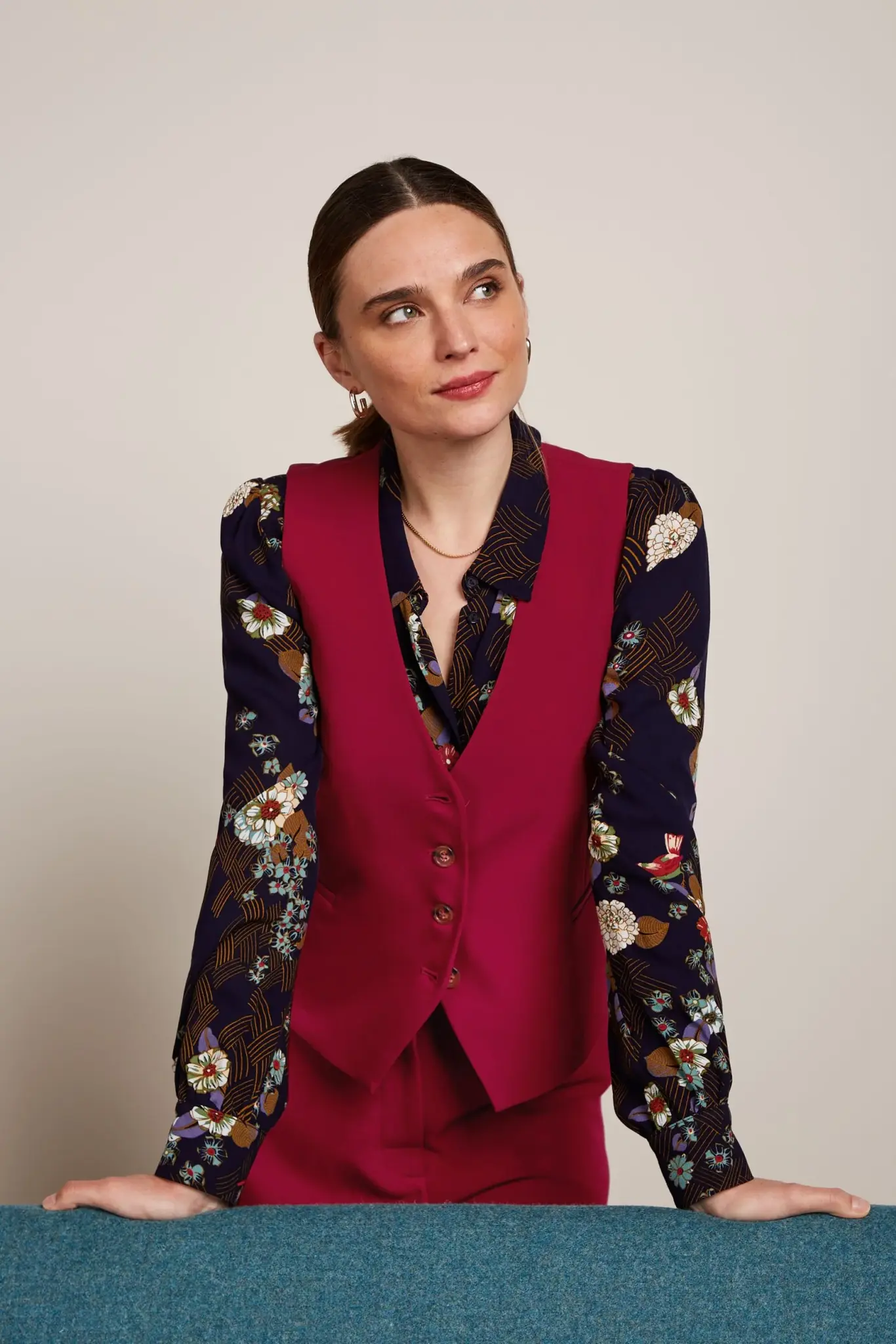 ProduktbeschreibungWesteTaillierter SchnittV-AusschnittKnopfreihe mit vier KnöpfenLeistentaschen auf der FrontGlattes InnenfutterLeichter Stretchkomfort